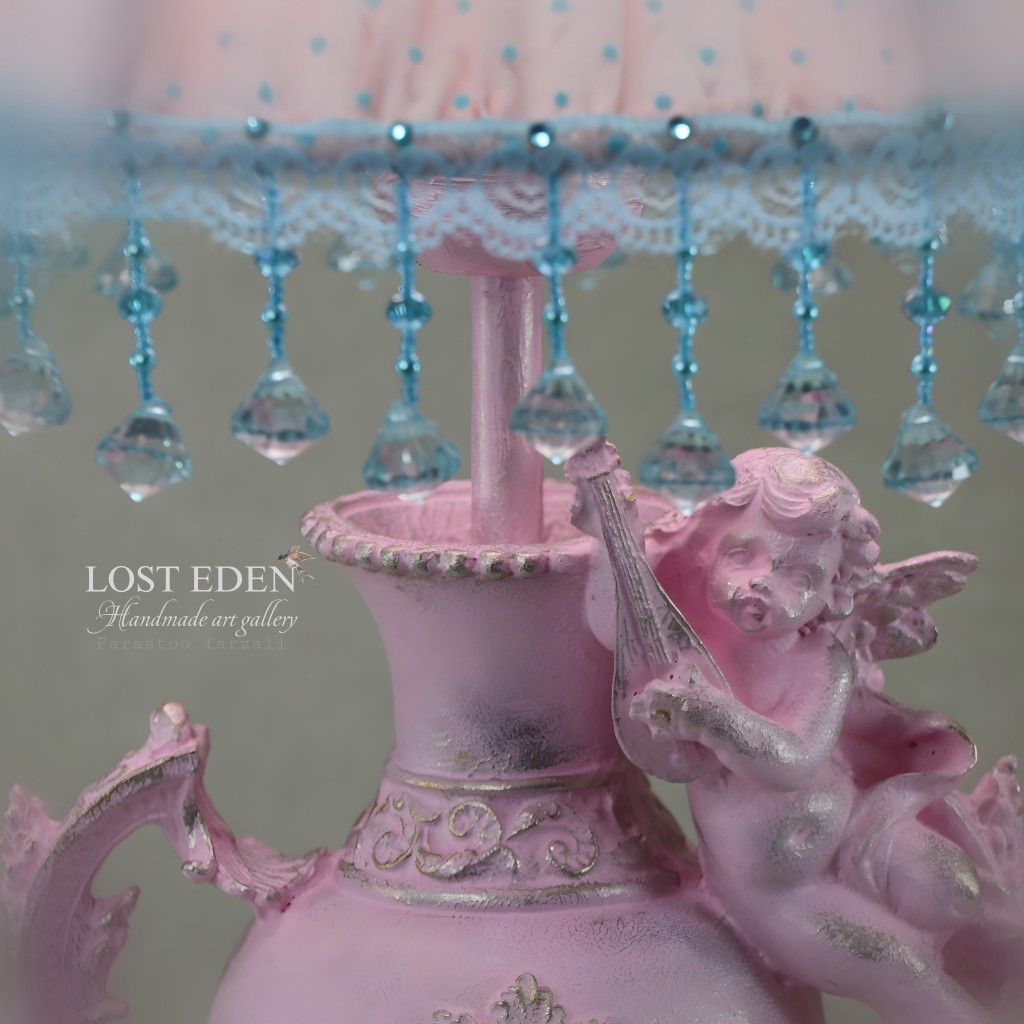 آباژور دستدوز فرشته با پایه پلی استر تزیین شده با کریستال و نگین
